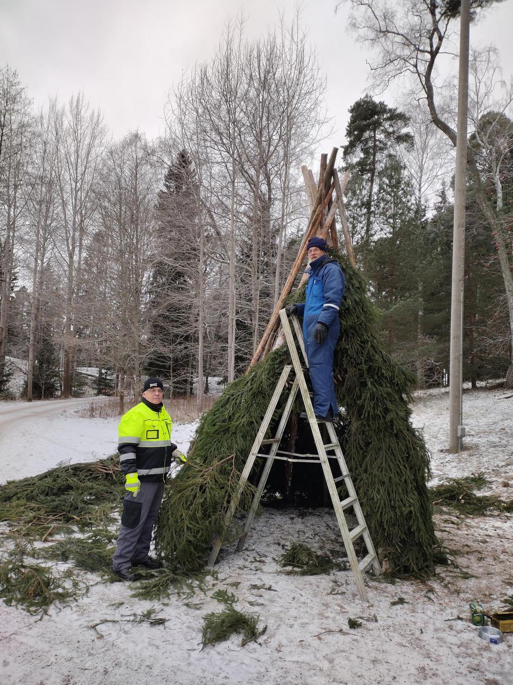 - Juhlakenttää lähestyttäessä löytyy nurmikentältä joulukuusia, jotka ovat kovin apeina ilman asiaankuuluvia koristuksia. Askarrelkaa kotona jokin oma joulukoriste ja ripustakaa se kuuseen yhteiseksi iloksi!
