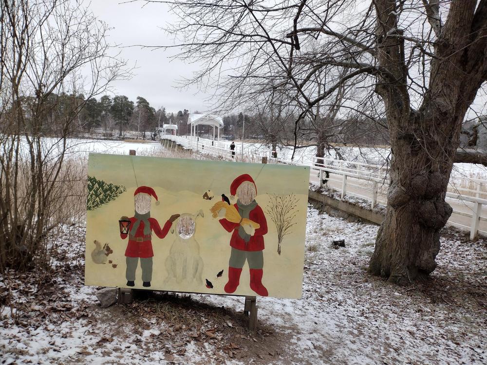Seurasaareen on jälleen rakennettu kaikenmoista pientä jouluista yllätystä kävijöiden iloksi. Kaulaliinat reitillä vihjaavat, että lähellä saattaa olla jotakin hauskaa – pidä siis silmät auki esimerkiksi seuraavia polun ihmeitä varten: